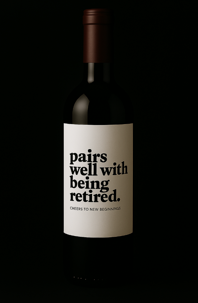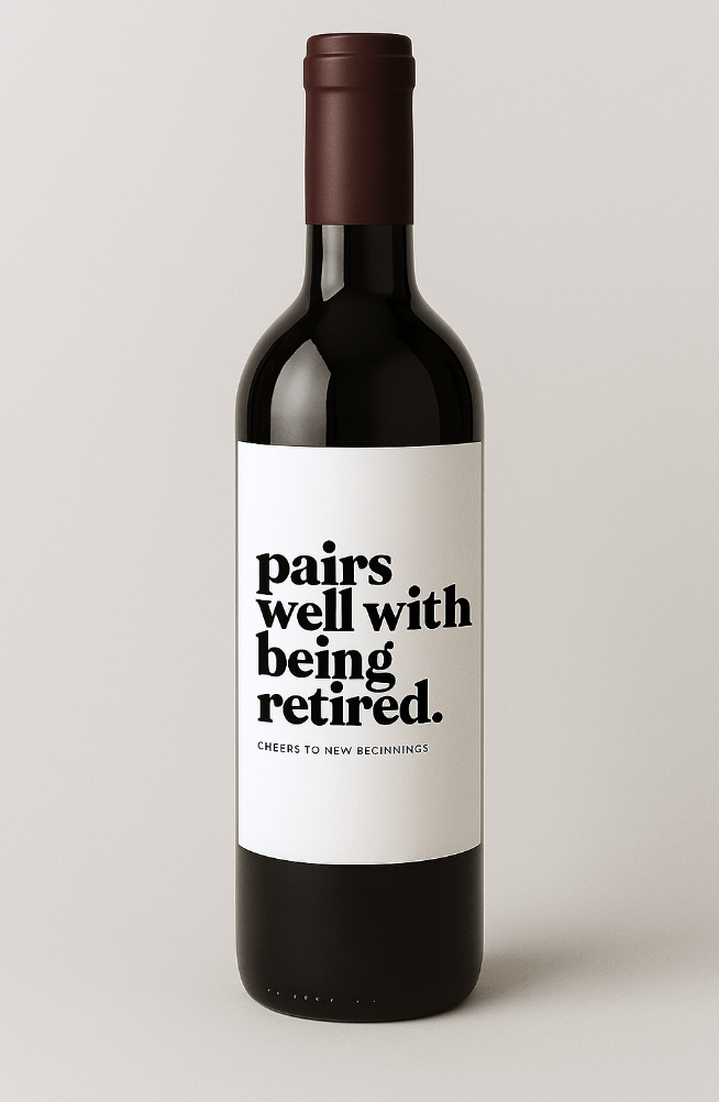 Pairs well with being Retired, Retirement Gift - Wine Label